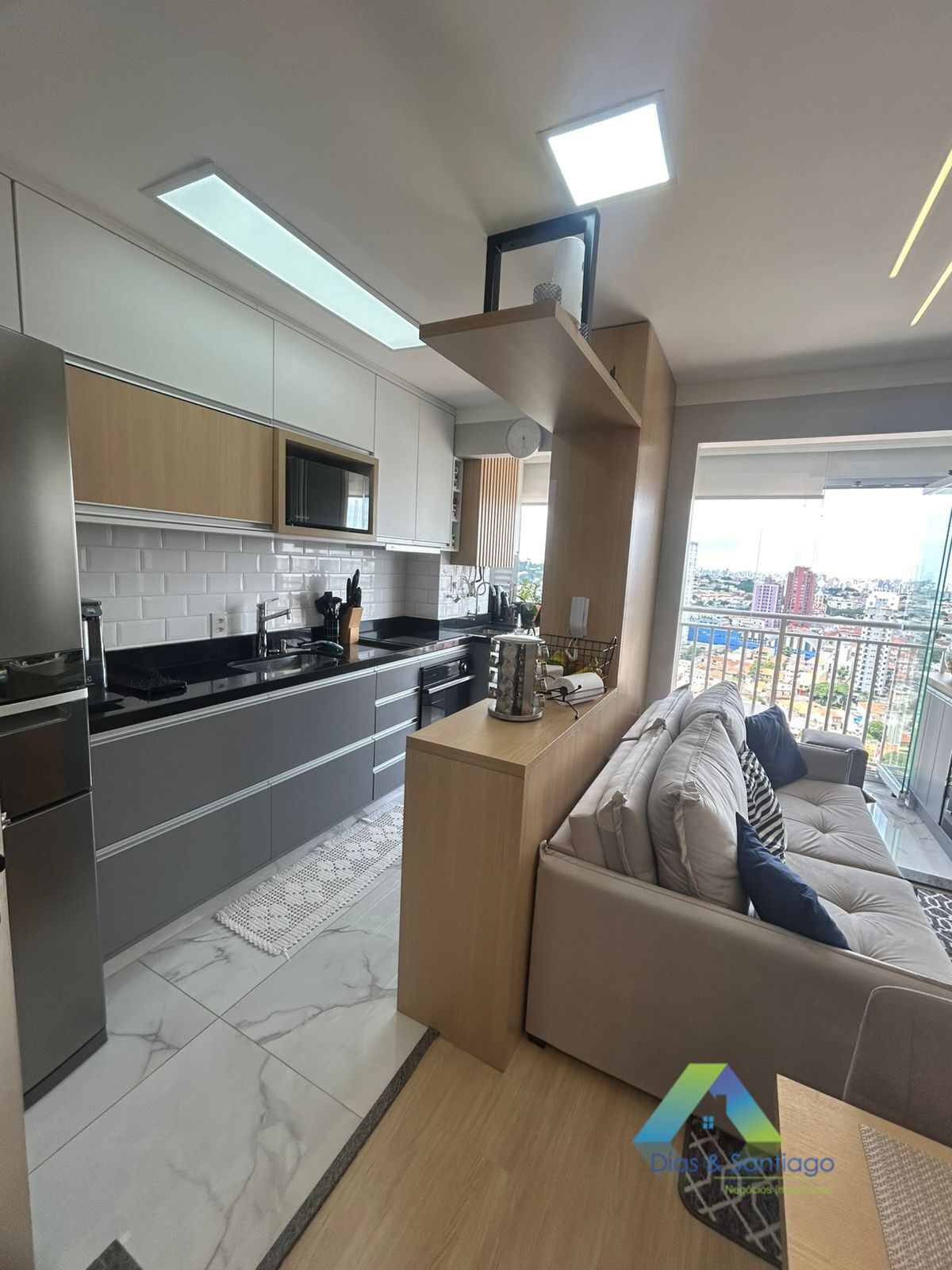 Apartamento 46M², 2 dormitorios , cozinha ampla arejada, area de serviço ,sala 2 ambientes, sacada, 1 vaga de garagem, designer moderno todo mobiliado repleto de armários planejados.