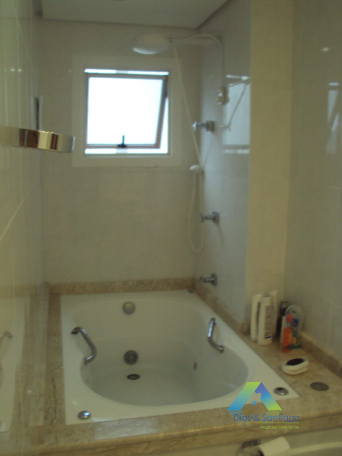 banheiro com banheira de hidromassagem- piso porcelanato junta seca - metais sanitários Docoll - super moderno, com teto de gesso e lâmpadas embutidas, ducha higiênica e aquecedor na pia.