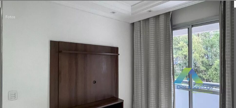 - Sala de estar com rack e cortina blackout