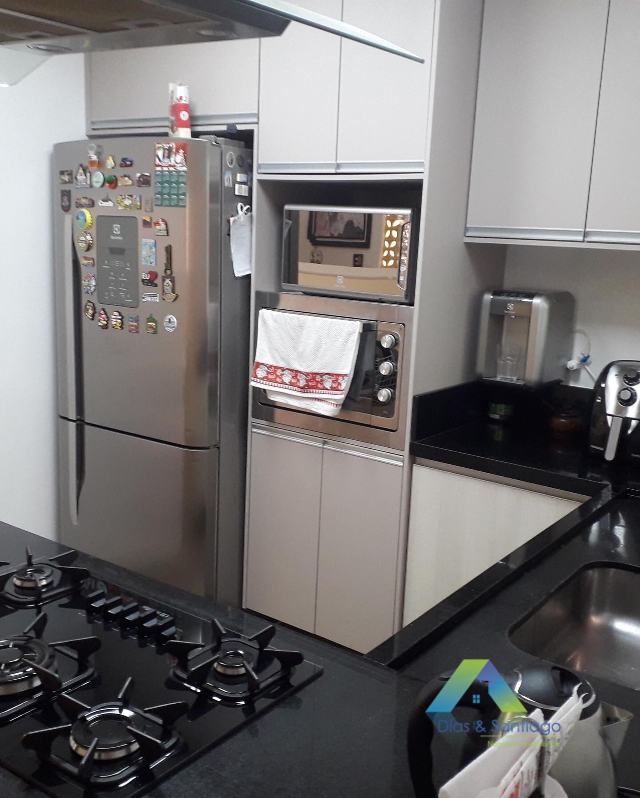 Para receber amigos e familiares uma incrivel área gourrmet no ultimo andar com churrasqueira, forno e fogão a lenha, sala de TV, banheiro e uma área aberta com chuveiro. Possui 3 vagas de garagem paralelas.
